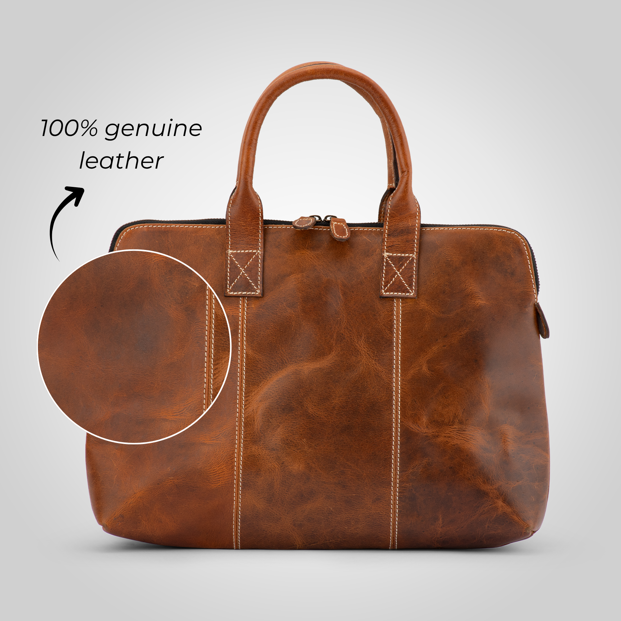 Its dual carrying options—top leather handles and a detachable padded shoulder strap—give you flexibility based on your needs. You can carry it like a briefcase for formal settings, or go hands-free when moving through airports or busy city streets.
